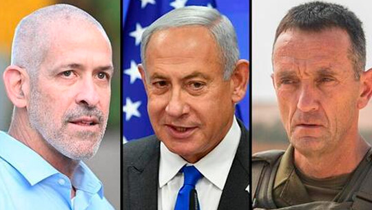 Ronen Bar, Benjamin Netanyahu y Herzi Halevi.